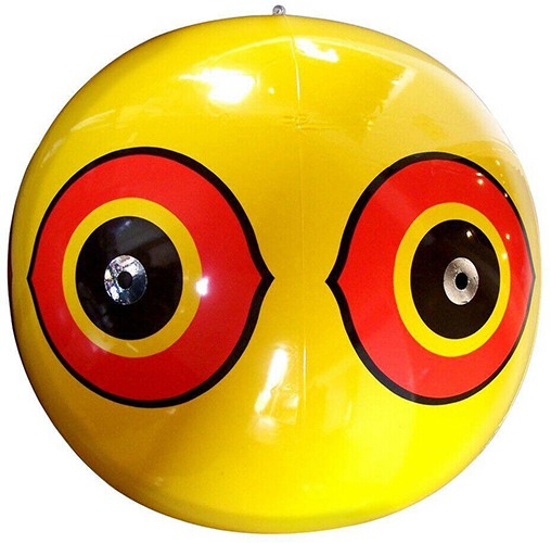 Для птиц и мелких животных 3D шар — это не только непонятный и потенциально опасный предмет, которого следует избегать. На поверхность шара нанесено крупное и реалистичное изображение глаз хищной птицы, которое вызывает инcтинктивный страх у небольших птиц и заставляет улетать подальше от этого места. Аналогичное воздействие отпугиватель оказывает и на мелких животных (кролики, скунсы, грызуны), которые также являются добычей для хищных птиц.